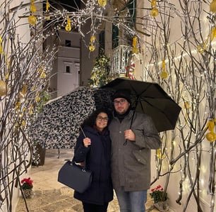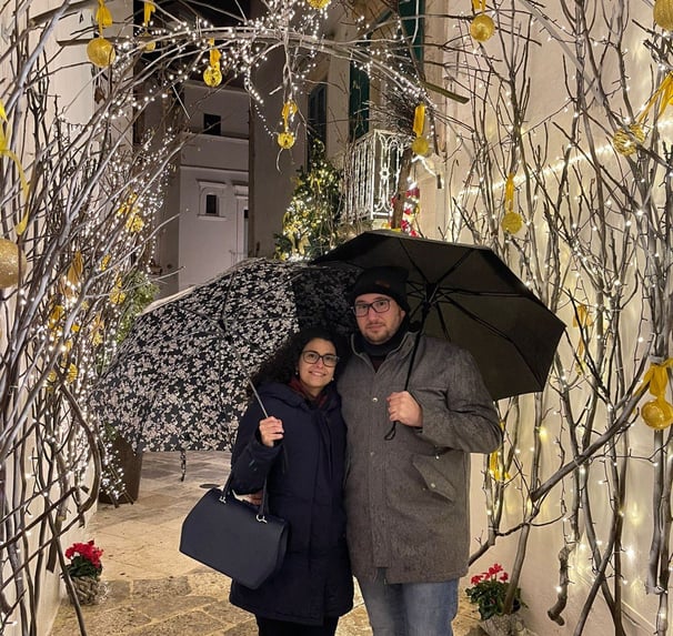 Locorotondo ci ha accolti in una serata piovosa, ma le luci natalizie hanno reso tutto speciale. Tra ombrelli e stradine illuminate, abbiamo scoperto che anche sotto la pioggia i momenti più belli brillano di emozione.